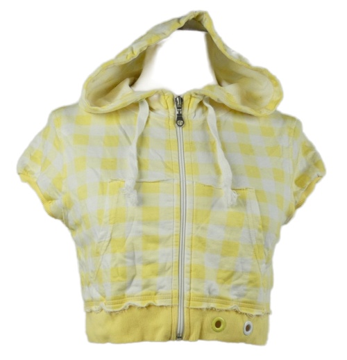 • Dámske žlto-biele kockované mikinové bolerko s kapucňou New Look
