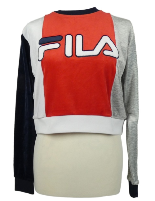 • Dámska sivo-tmavomodro-červená zamatová crop mikina s logom Fila