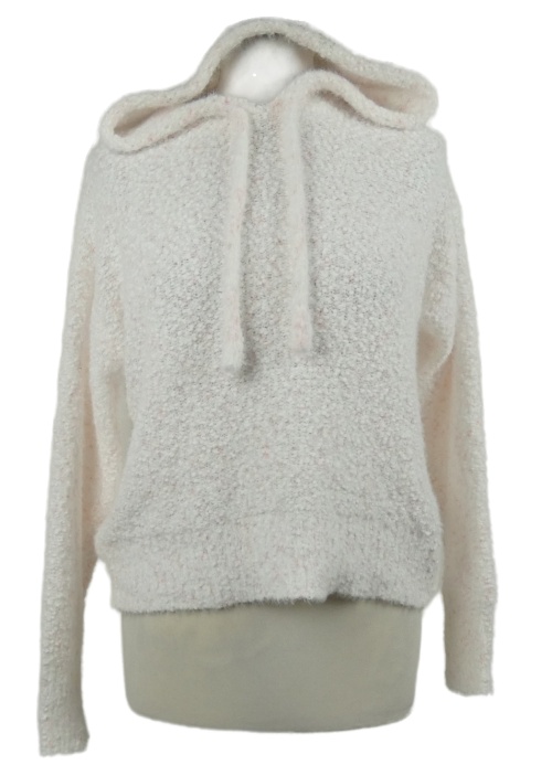 Dámsky bielo-ružový melírovaný chlpatý sveter s kapucňou No Boundaries