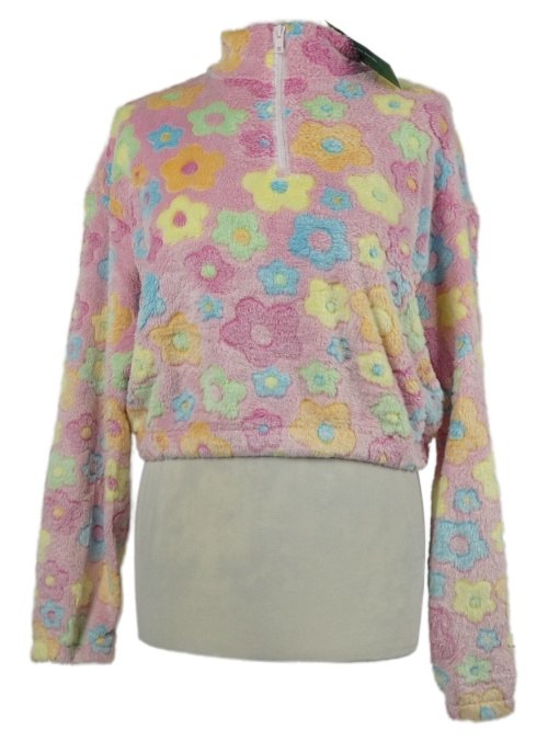 Dámska ružová kvietkovana chlpatá crop mikina Shein