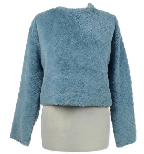 Dámska svetlomodrá károvaná chlpatá crop mikina Zara