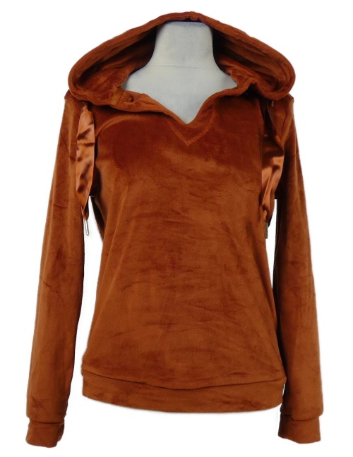 Dámska skořicová zamatová mikina s kapucňou Up2Fashion