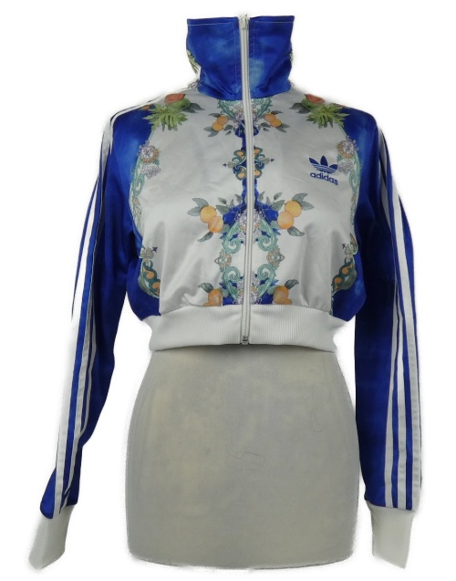• Dámska bielo-tmavomodrá prepínaci športová crop mikina so vzorom Adidas
