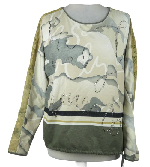 • Dámsk béžovo-khaki vzorovaná mikina so sieťovinou a kamienkami Gil&Joy