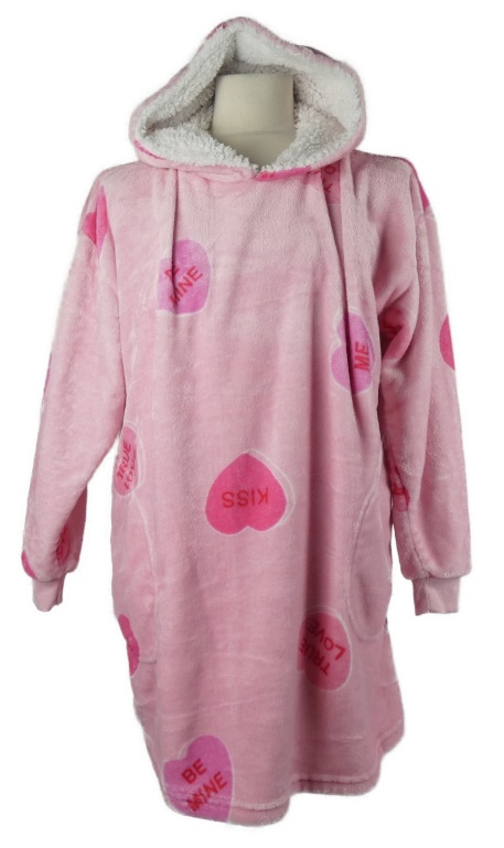 Dámska svetloružová plyšová domáceá oversized mikina s nápismi a kapucňou