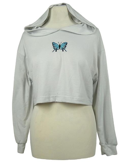 Dámska smotanová crop mikina s motýlkom a kapucňou Shein