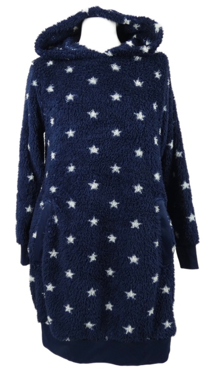 • Dámska tmavomodrá hviezdičkovaná chlpatá oversized domáceá mikina s kapucňou ElleNor