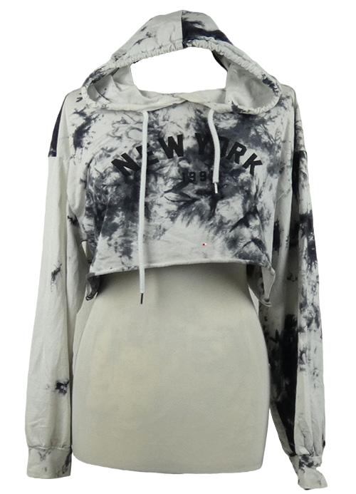 Dámska smetanovo-tmavosivá batikovaná crop mikina s nápisom a kapucňou Shein