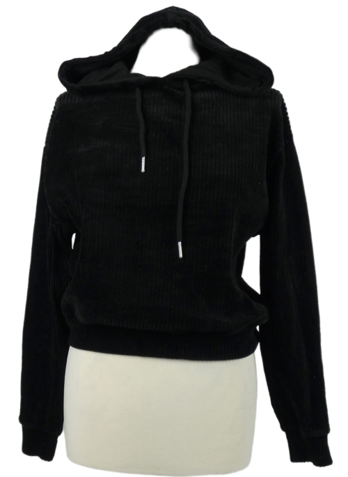 • Dámska čierna rebrovaná crop zamatová mikina s kapucňou New Look
