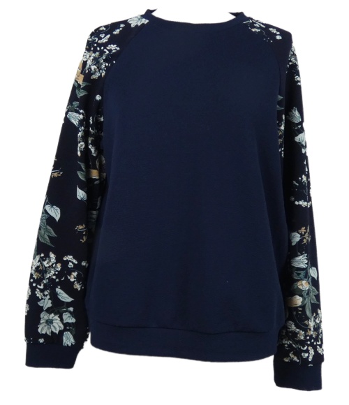 Dámska tmavomodrá mikina s kvetovanymi rukávy Shein