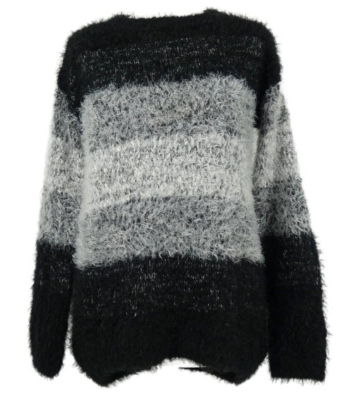 Dámsky čierno-sivý pruhovaný chlpatý sveter Pean Pascale