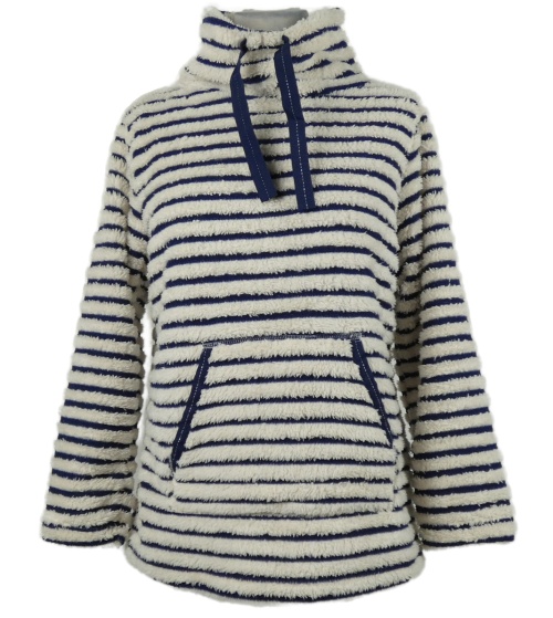 Dámska bielo-tmavomodrá pruhovaná chlpatá mikina s komínovým golierom F&F