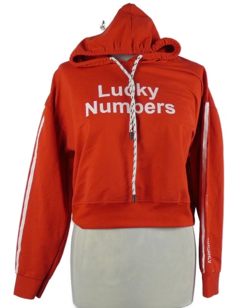 Dámska červená crop mikina s nápismi a kapucňou