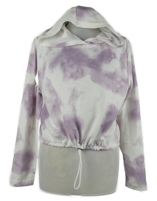 Dámska lila-biela batikovaná crop mikina s kapucňou
