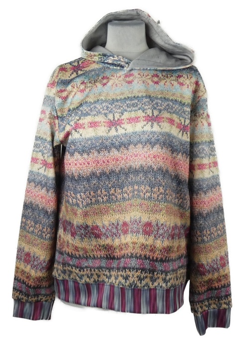 Dámska modro-ružovo-zelená vzorovaná mikina s kapucňou