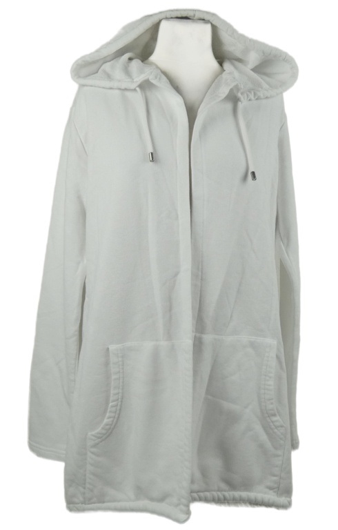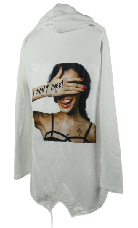 Dámsky biely teplákový cardigán s potlačou a kapucňou