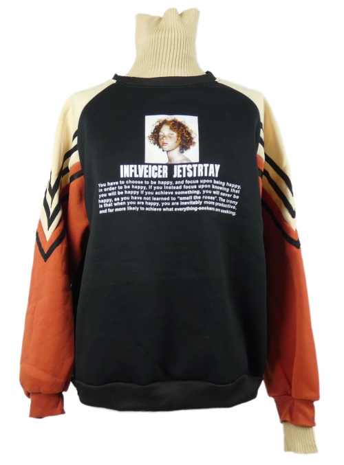 Dámska čierno-béžovo-tehlová oversized mikina s potlačou a rolákom