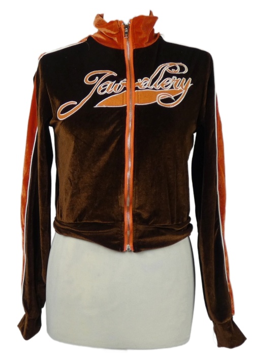 Dámska hnedo-červená zamatová crop mikina s nápisom