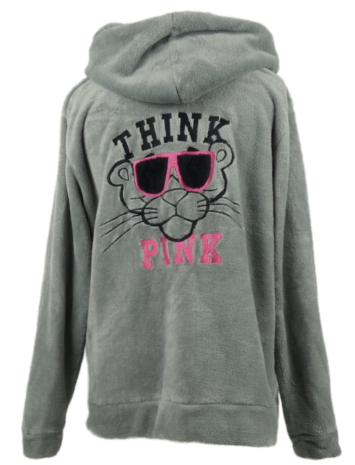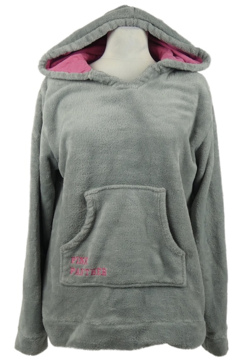 Dámska sivá chlpatá mikina s Růžovým panterem a kapucňou