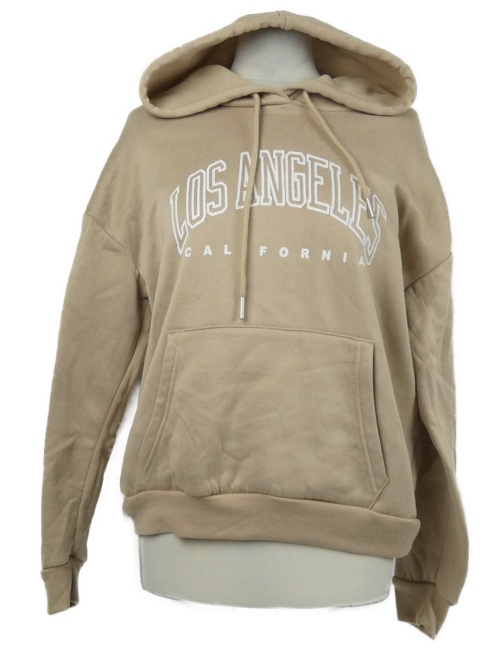 Dámska béžová mikina s nápisom a kapucňou Shein