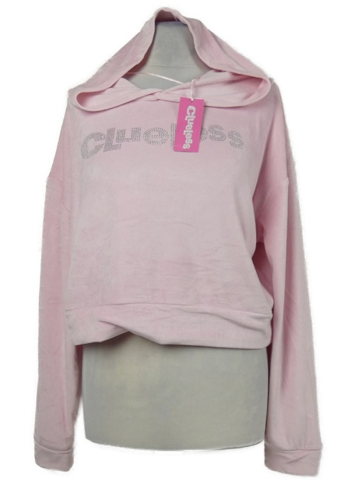 Nové - Dámska svetloružová zamatová crop mikina s nápisom a kapucňou