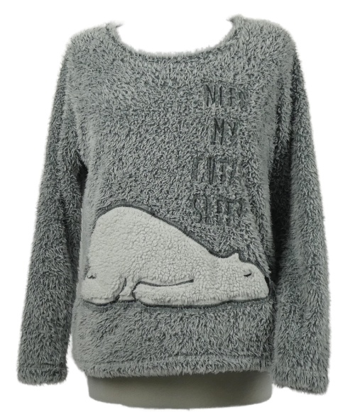 • Dámske sivé chlpaté pyžamové tričko s medvedíkom Blue Motion