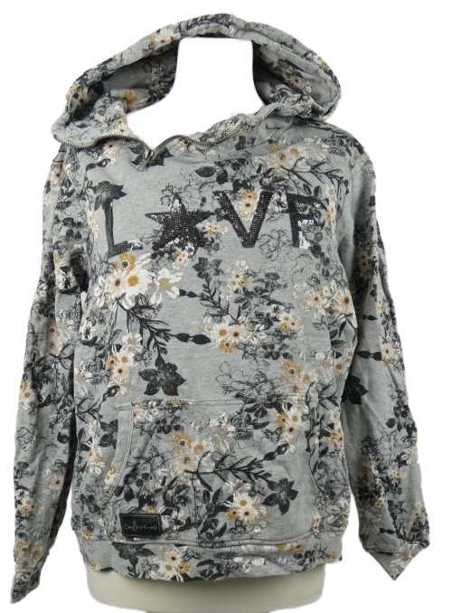 Dámska sivá kvetovaná mikina s nápisom a kapucňou Gina