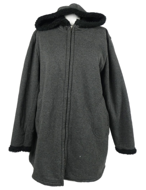 Dámsky tmavosivý teplákový zateplený kabát s kapucňou Bonprix