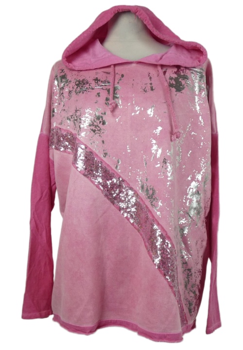 • Dámska fuchsiovo-ružovo-strieborná voľné á mikina s flitrami a kapucňou