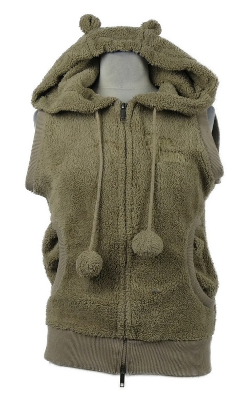 Dámska hnedá chlpatá vesta s kapucňou