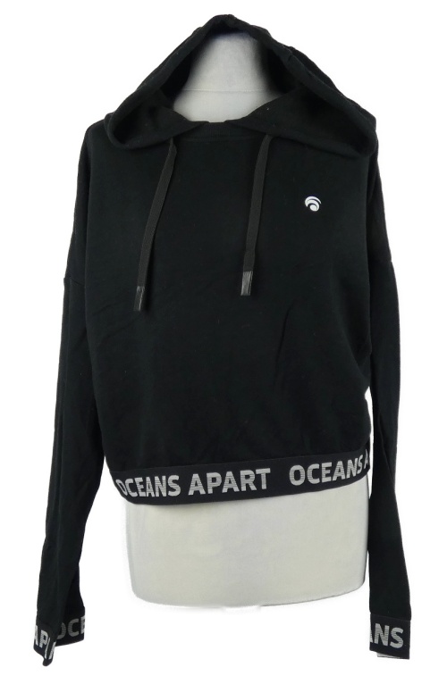 Dámska čierna crop mikina s nápismi a kapucňou Oceans Apart