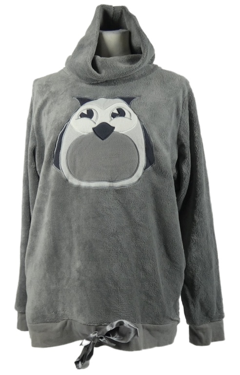 • Dámska sivá plyšová domáceá mikina so sovou a komínovým golierom Esmara