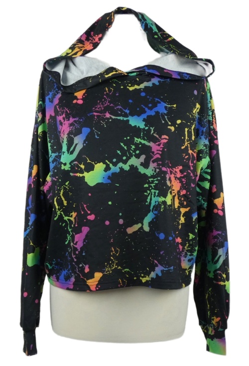 Dámska čierno-farebná vzorovaná crop mikina s kapucňou Shein