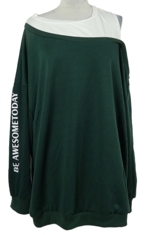 Dámska tmavozeleno-biela mikina s nápisom Shein