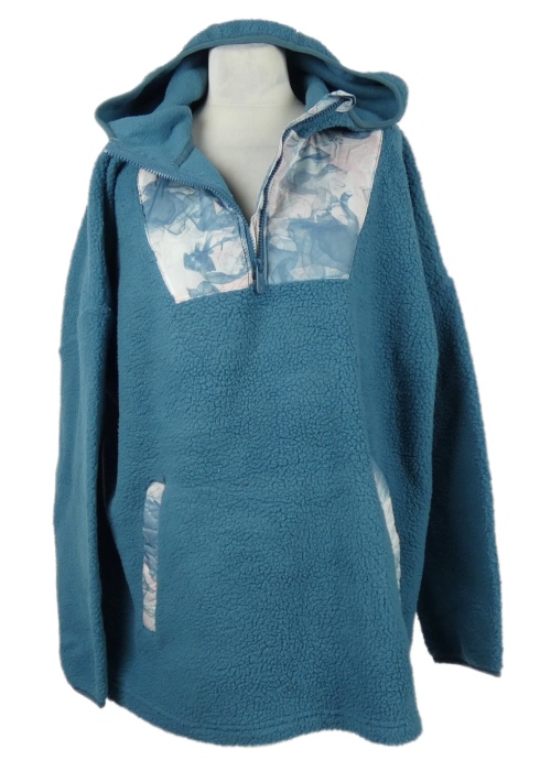 Dámska modro-vzorovaná huňatá mikina s kapucňou Animal