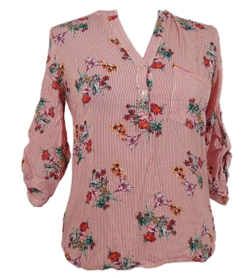Dámska červeno-biela prúžkovaná kvetovaná blúzka s rolovacími rukávy Primark