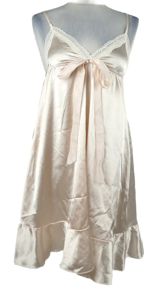 Dámska svetloružová saténová nočná košeľa s čipkou