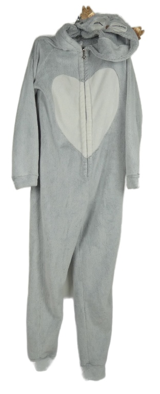 Dámska sivo-biela plyšová kombinéza s kapucí - sova Etam
