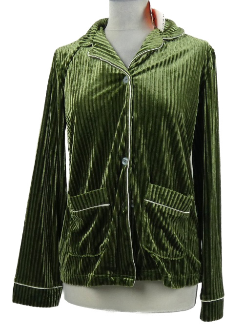 Nové - Dámský olivový sametový žebrovaný pyžamový kabátek Cider