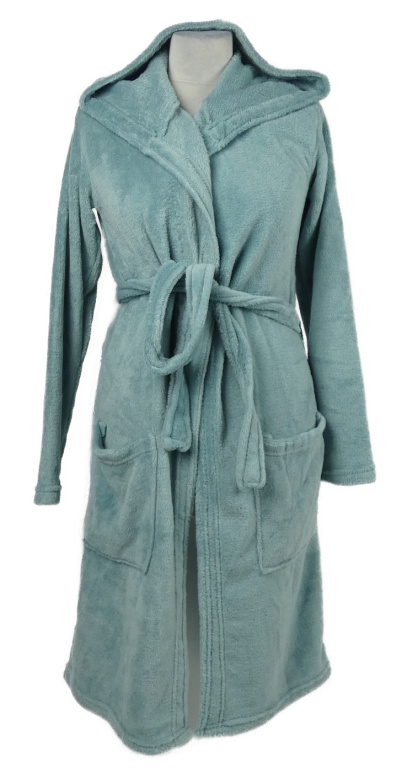 Dámsky svetlomodrý chlpatý župan s kapucňou a opaskom