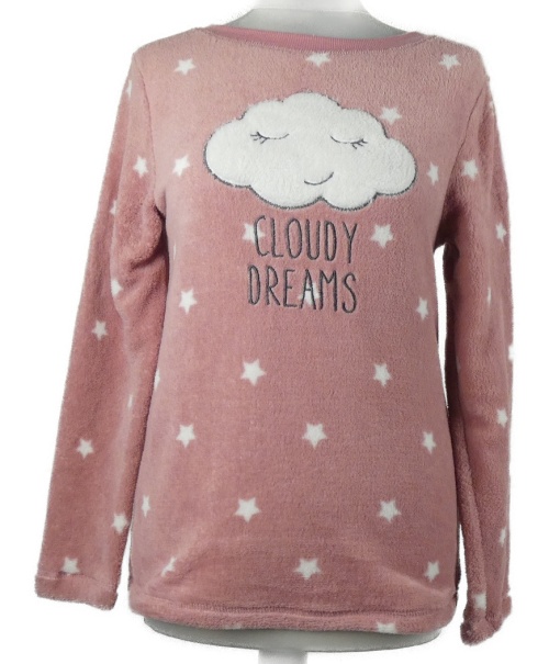 Dámske ružové hviezdičkované plyšové pyžamové tričko Janina