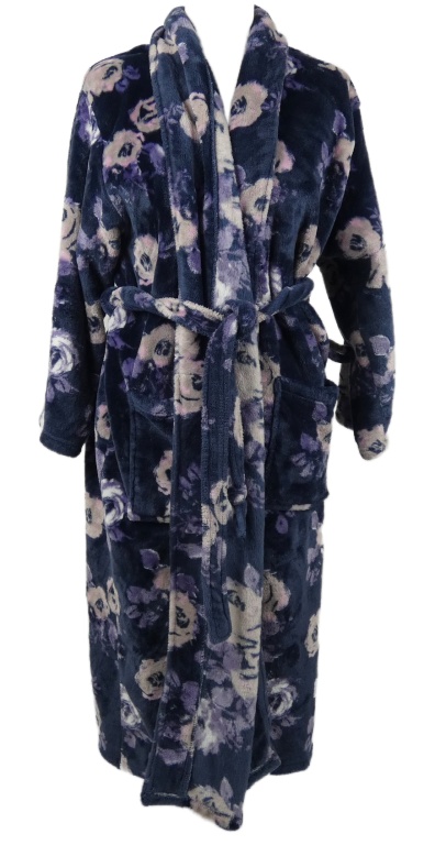 Dámsky tmavomodrý kvetovaný chlpatý župan s opaskom George