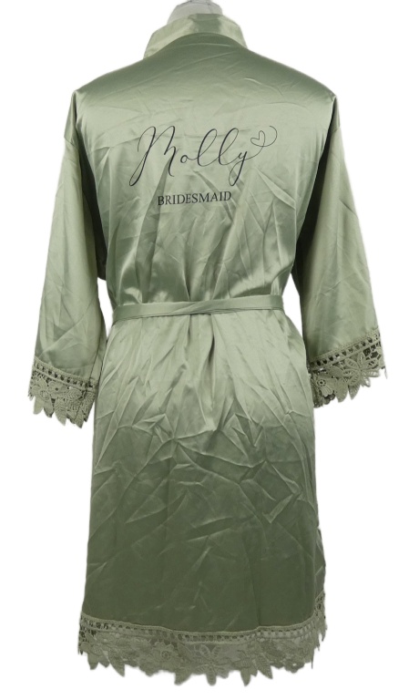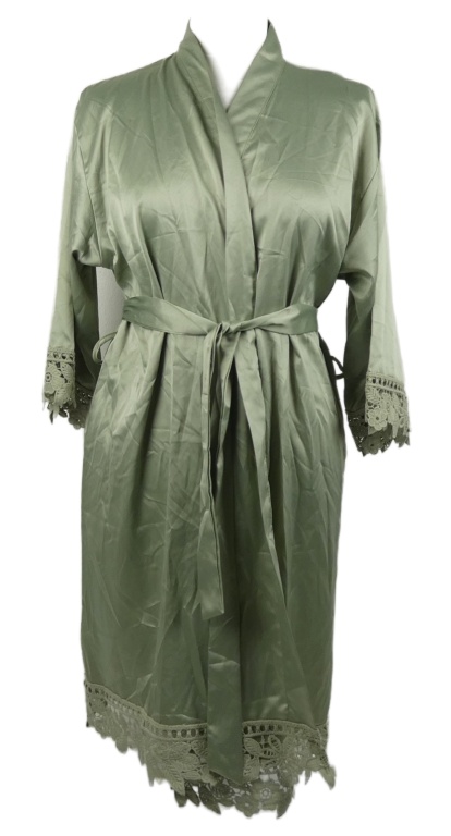 Dámsky světlekhaki saténový župan s čipkou a opaskom