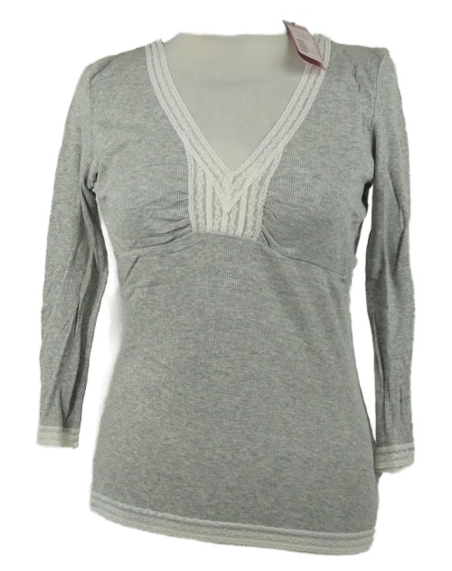 Nové - Dámske sivé rebrované pyžamové tričko s čipkou Monsoon