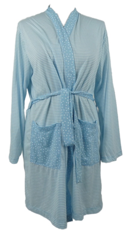 Dámsky světlemodro-biely pruhovaný župan s opaskom
