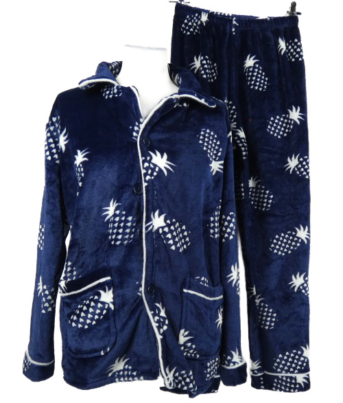 Dámske tmavomodré plyšové pyžama s ananásmi