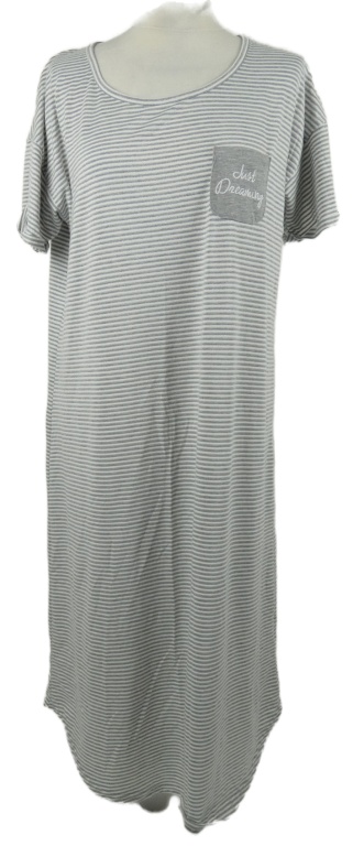 Dámska sivo-biela prúžkovaná nočná košeľa s nápisom Peacocks