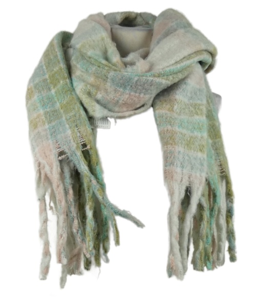 Dámska ružovo-zelená kockovaná šál s strapcemi