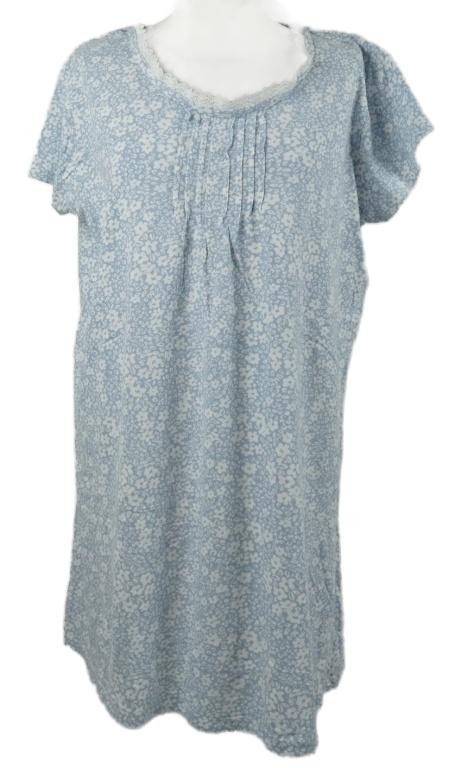Dámska světlemodro-biela kvietkovana nočná košeľa s čipkou Matalan