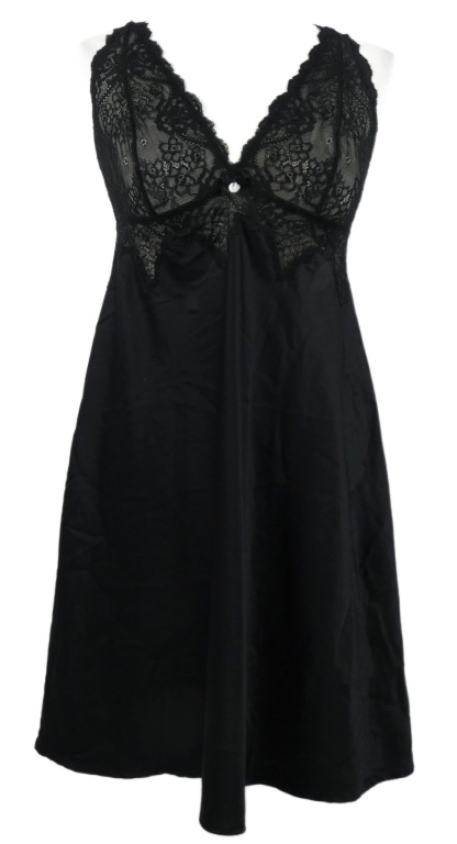 Dámska čierna krajkovo/saténová nočná košeľa Boux